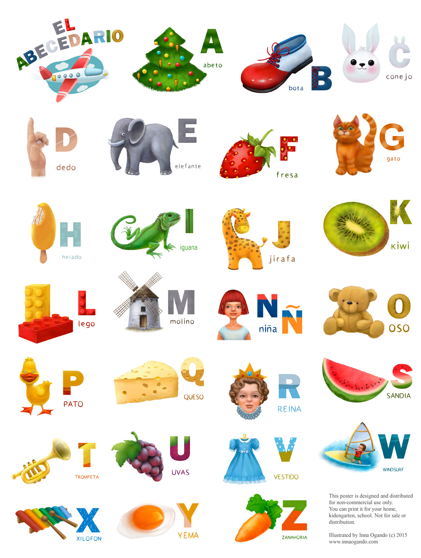 Hi! I created this Spanish alphabet many years ago and it's time to offer this to you. Spanish alphabet is free for non-commercial use, ready to download, to print and enjoy.